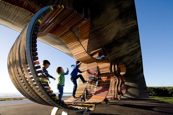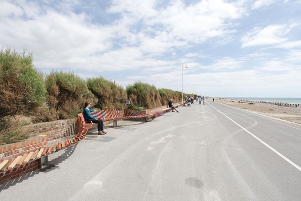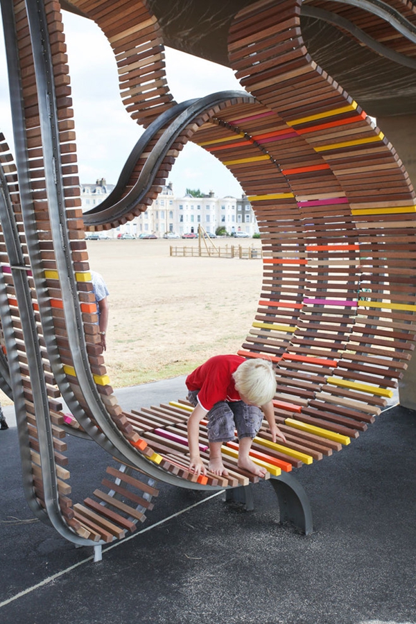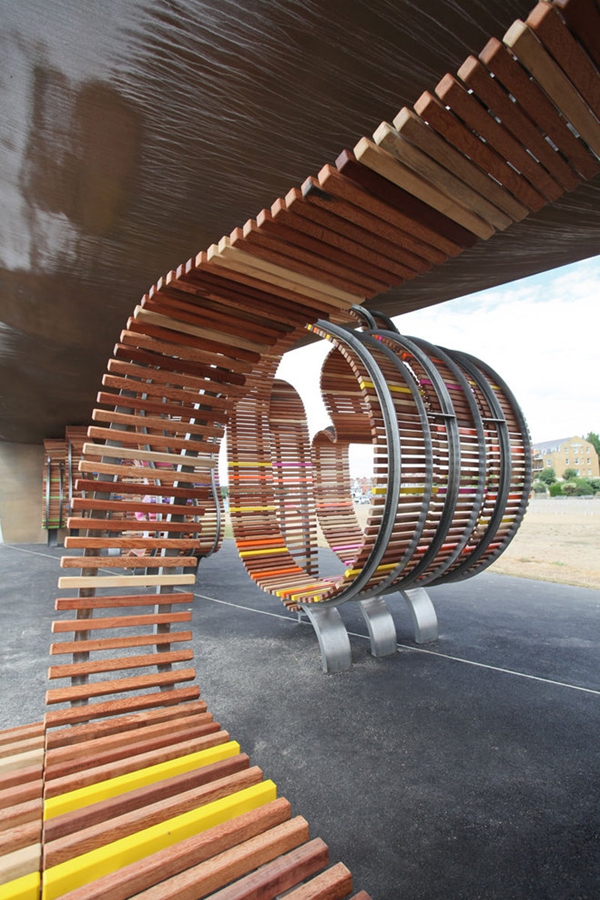 這是由Studio Weave設計的The longest bench,位于Littlehampton海濱,于2010年7月30完工。沿著(zhù)蜿蜒的軌道,利用100%回收的熱帶硬木板,制造出這個(gè)富有魅力的旋轉環(huán)繞的長(cháng)椅。