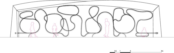 這個(gè)長(cháng)椅被限制在一座不銹鋼的框架結構中,切面看上去如同隨意的卷曲線(xiàn)條,一期工程的長(cháng)凳曲線(xiàn)總長(cháng)度為620米,可容納800名成年人就坐。木條長(cháng)椅上被設計了豐富的色彩,粉紅、黃色、橙色。在東部,紫色和藍色在西部,表達了自然的色彩和色調的變化。